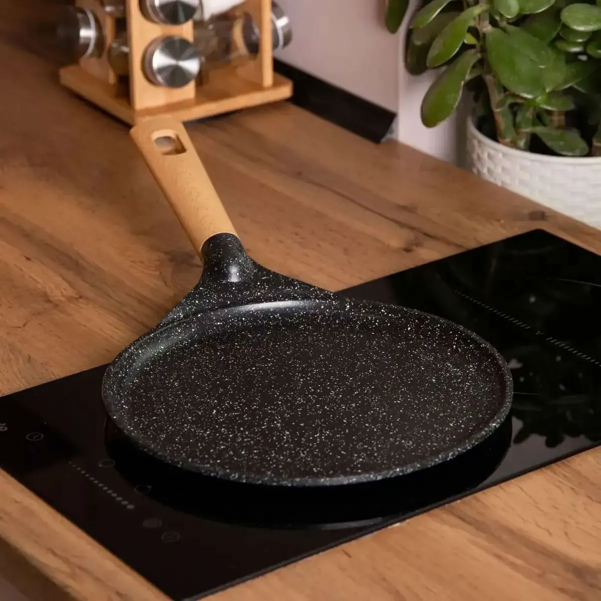 Алюмінієва млинцева сковорода з мармуровим антипригарним покриттям Ø 28 см, товсте дно MGC Black HP-4-430B