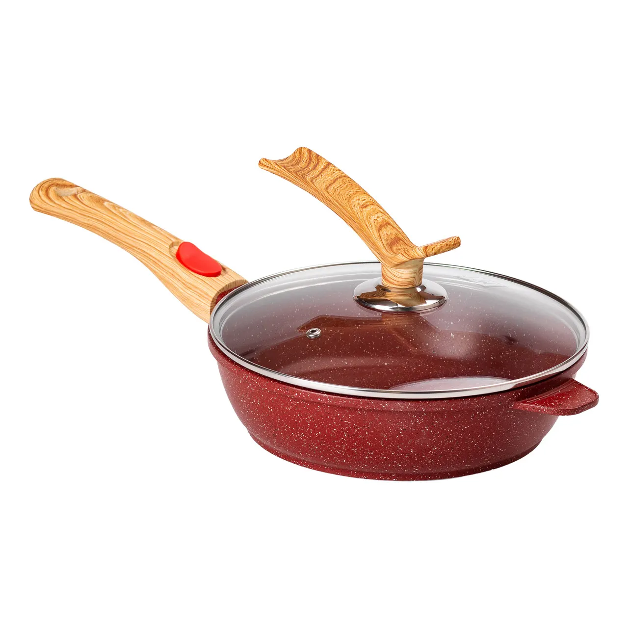 Алюмінієва глибока сковорода (2,4 л) зі скляною кришкою Ø 24 см Червоний MGC HP-4-463R
