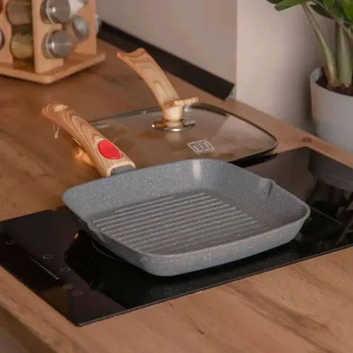 Алюмінієва сковорода-гриль 24 см зі скляною кришкою Квадрат сірий MGC HP-4-461G