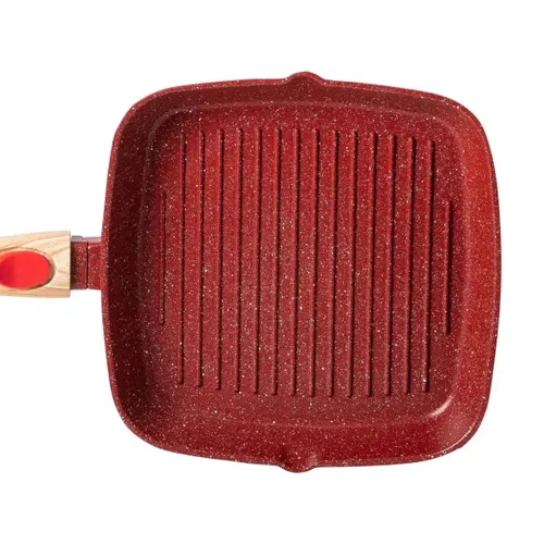 Сковорода-гриль Square Red підходить для приготування стейків, овочів, риби та інших продуктів, які потребують рівномірного прожарювання з характерними відмітками гриля. Вона також ефективна для запікання, тушкування та приготування страв з мінімальною кількістю олії.