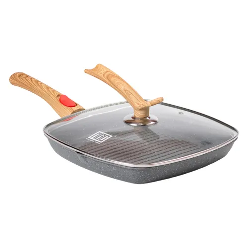 Алюмінієва сковорода-гриль 28 см зі скляною кришкою Квадрат сірий MGC HP-4-462G є універсальним кухонним аксесуаром, створеним для комфортного та ефективного приготування різних страв. Сковорода виготовлена з високоякісного алюмінію з антипригарним керамічним покриттям, яке забезпечує рівномірний розподіл тепла і запобігає прилипання їжі. Скляна кришка з отвором для виходу пари допомагає підтримувати оптимальний рівень пару, що сприяє більш соковитому та рівномірному приготуванню продуктів.