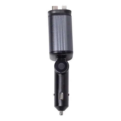 Зручність і мобільність забезпечуються висувними кабелями Type-C і Lightning, які легко розкладаються і автоматично прибираються, усуваючи зайвий безлад. Посилені пружинні затискачі надійно фіксують зарядний пристрій у прикурювачі навіть при русі по нерівних дорогах, забезпечуючи стабільність з’єднання.