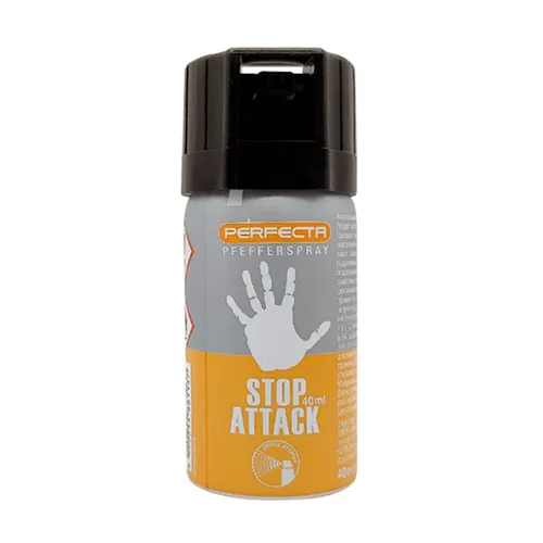 Аерозольний балон із дратівливим препаратом на основі капсаїцину Perfecta Stop Attack Pepper spray, призначений для захисту від нападу агресивних тварин, у тому числі собак.