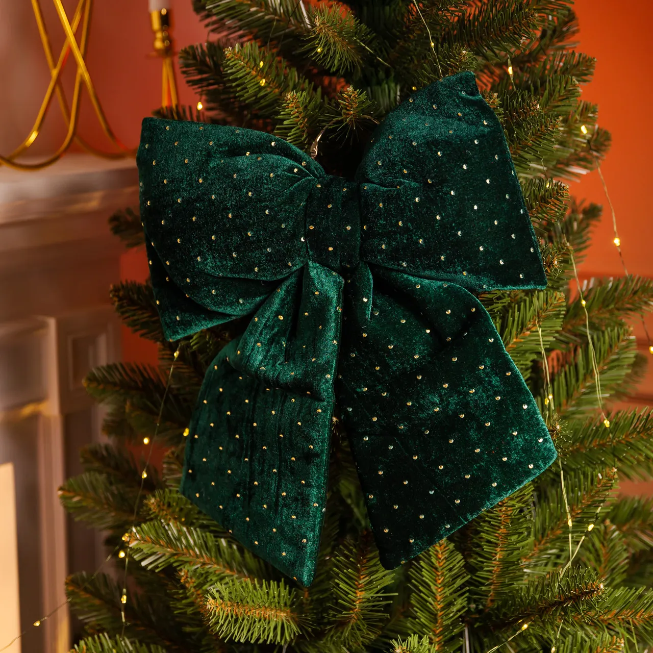 Оксамитовий бант для декору зі стразами на ялинку 35×45 (см) Зелений CR-2-11