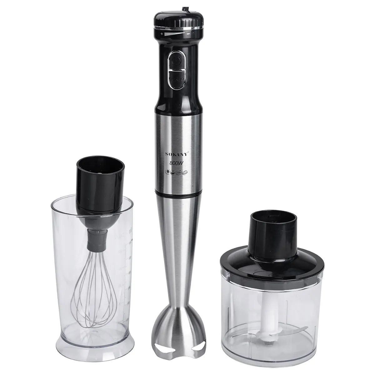 При виборі ручного блендера важливо враховувати потужність двигуна, що впливає на продуктивність. Модель Sokany SK-768-4 з потужністю 800 Вт підходить для більшості домашніх завдань, забезпечуючи високу ефективність при подрібненні і змішуванні.