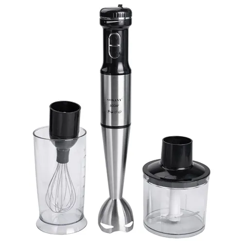 Блендер ручний занурювальний Sokany SK-768-4 – це багатофункціональний прилад, який зробить процес приготування їжі простим і зручним. Завдяки потужності 800 Вт, пристрій ефективно справляється зі змішуванням та подрібненням різних інгредієнтів. Два режими роботи дозволяють вибрати оптимальний режим для досягнення потрібної консистенції. Основні характеристики блендера: потужність 800 Вт; об’єм чаші 600 мл; матеріал корпусу - нержавіюча сталь; матеріал лез - нержавіюча сталь; механічне керування; 2 режими швидкості.