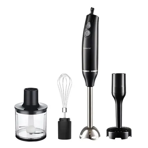 Ручний занурювальний блендер Sokany універсальний 4 в 1 потужністю 800 Вт призначений для швидкого та ефективного приготування різноманітних страв. Його міцні леза із нержавіючої сталі забезпечують тривалий термін служби та високу якість подрібнення. Блендер має зручний компактний дизайн довжиною 38 см, що дозволяє керувати ним одною рукою, підвищуючи ергономіку на кухні.
