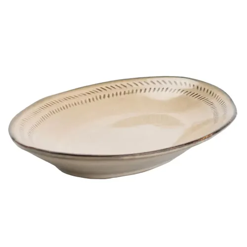 Де купити сервірувальну овальну керамічну страву 29х19 см бежева HP23381
