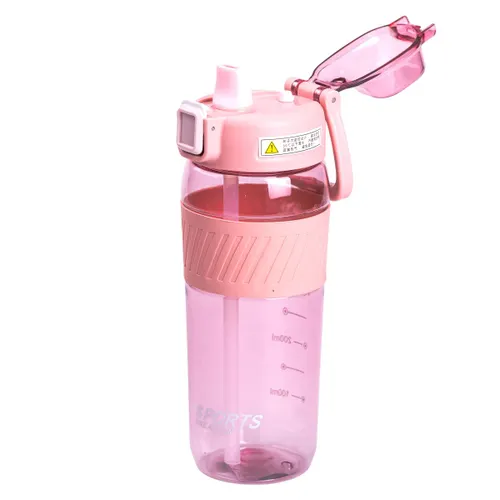 Пляшка для води 600 мл пляшка в школу для тренувань із трубочкою та ручкою 22 см Рожева HP-14-42P