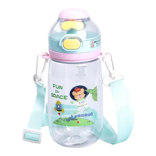 У комплект входить ремінець для зручного перенесення: його можна зафіксувати на руці, шкільному рюкзаку або спортивній сумці. Ремінець забезпечує безпеку зберігання і перешкоджає випадковій втраті пляшки в дорозі. Крім того, на кришці передбачена відкидна трубочка, яка полегшує пиття, не вимагаючи нахиляти ємність.
