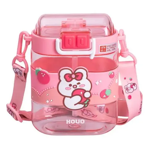 Характеристики "Пляшка для води дитяча з трубочкою та ремінцем 560 мл пляшечка для пиття в школу 15 см Рожева HP-14-36P"