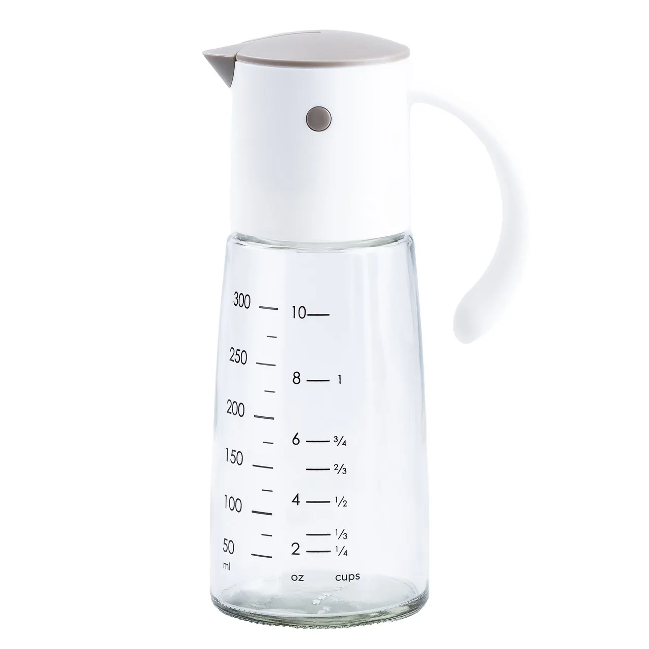 Пляшка-дозатор для олії та оцту об'ємом 300 мл є зручним та ергономічним кухонним пристроєм, призначеним для точного та акуратного наливання рідин. Виготовлена з прозорого скла, вона дозволяє візуально контролювати рівень вмісту, що виключає необхідність додаткового відкривання та запобігає помилковим дозуванням.