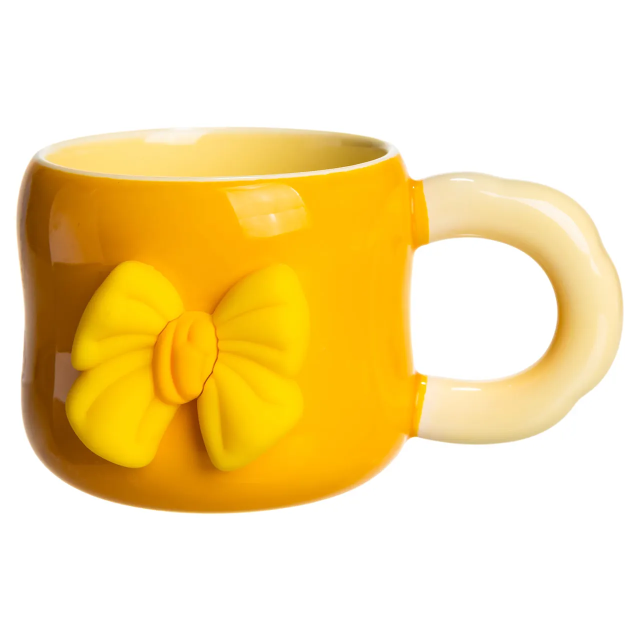Чашка порцелянова з магнітом Бант 400 (мл) подарункова кружка прикольна чашка для дітей на подарунок Жовтий з бежевим FM-52B