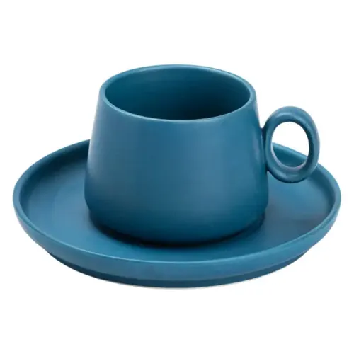 Керамічна чашка з блюдцем об'ємом 300 мл представлена в класичному синьому кольорі. Її розмір оптимальний для подачі як гарячих, так і холодних напоїв, що робить виріб універсальним для домашнього та офісного використання. Висота чашки становить 7 см, діаметр – 7,3 см, що забезпечує зручність утримання і комфорт при використанні.