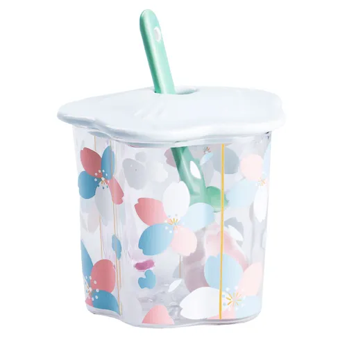 Ця модель підходить для дітей та дорослих, завдяки безпечним матеріалам виготовлення, включаючи скло, пластик і кераміку. Кришка захищає напій від забруднень і зберігає його свіжість, а ложка дозволяє зручно розмішувати вміст безпосередньо в чашці.