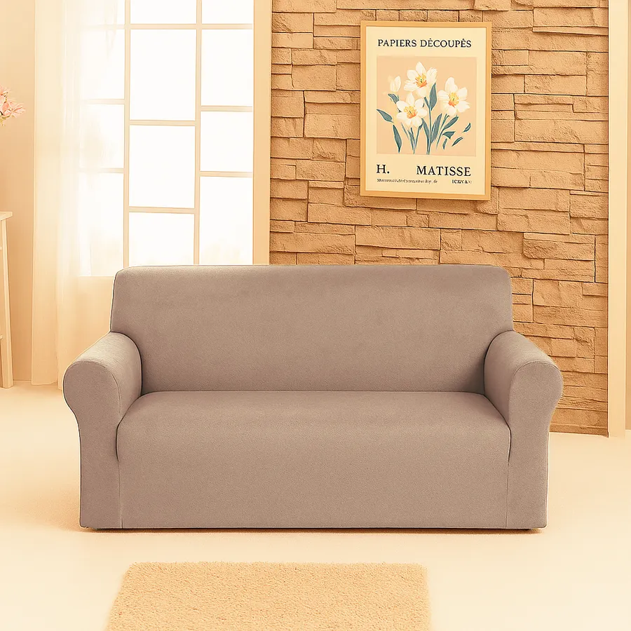 Еластичність матеріалу дозволяє чохлу надійно прилягати до поверхні дивана без складок, не зміщуючись під час експлуатації. Спеціальні поролонові валики, що входять до комплекту, забезпечують додаткову фіксацію, утримуючи тканину між сидінням, спинкою та підлокітниками.