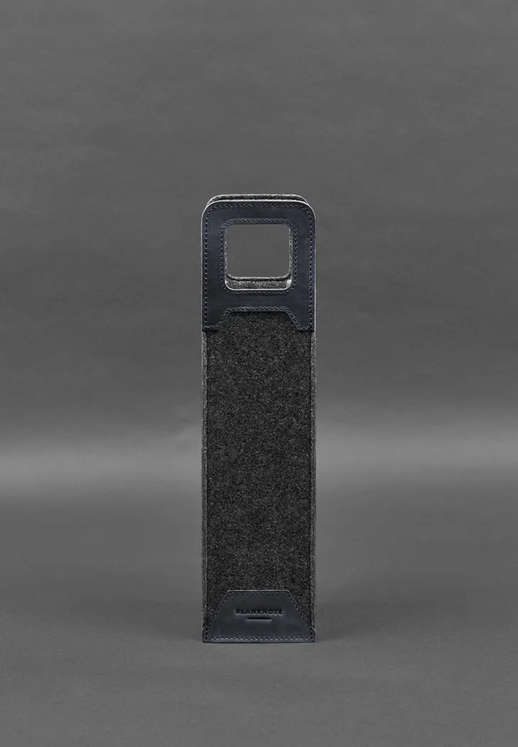 Чохол для вина 1.0 із фетру зі шкіряними вставками синій Crazy Horse