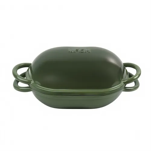 Чавунна овальна форма для випікання хліба з кришкою 25×17×15 (см) форма для хліба в духовку Зелена HP-1-23-GREEN