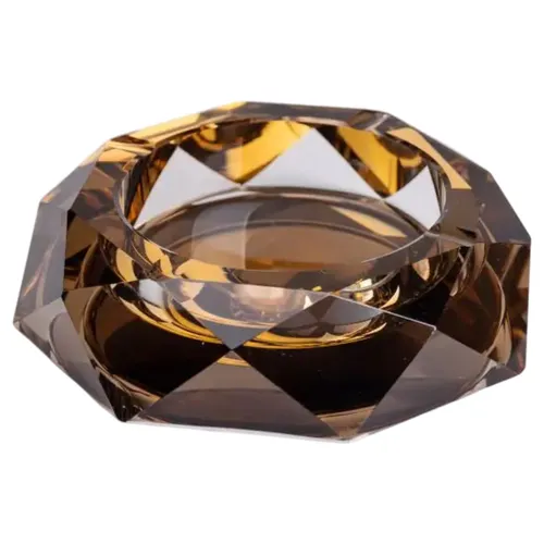 Дана попільничка вирізняється поєднанням елегантності та міцності завдяки використанню багатогранного скла з золотистим відтінком. Такий дизайн рідко зустрічається у стандартних аксесуарах, що робить виріб унікальним.
