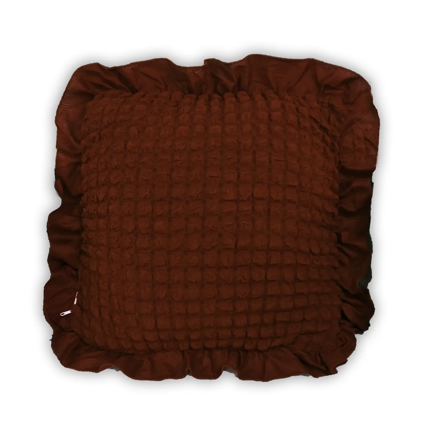 Колір однотонний подушки, виконаний в коричневому відтінку, що відповідає сучасним тенденціям декорування. Тканина з лайкри з жниваркою пропонує приємні тактильні відчуття на шкірі. Наволочку можна прати при температурі 30 градусів, при цьому гладити не потрібно, що заощаджує ваш час.