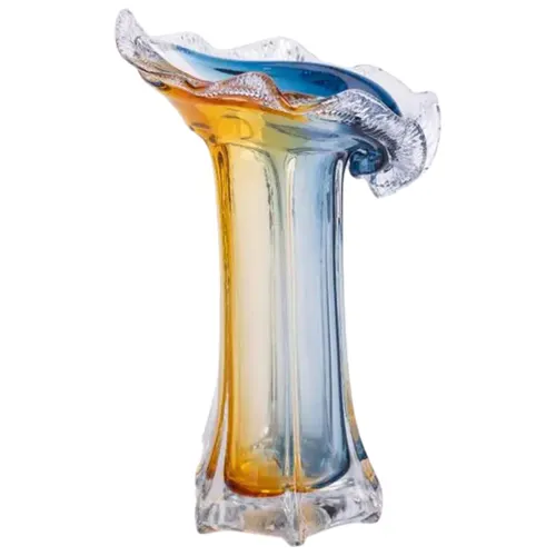 Декоративна скляна ваза для квітів 29 см фігурна ваза 500 мл Жовто-синя HP-9-4 поєднує в собі якість, стиль і практичність. Це універсальний і гарний елемент декору, здатний прикрасити будь-який інтер’єр і підкреслити красу квіткових композицій.