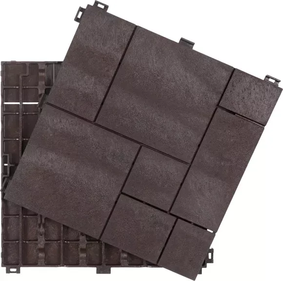Декоративне покриття для підлоги Mosaic, рифлене, 30х30см, коричневий, уп.6 шт. є чудовим вибором для тих, хто шукає надійне та естетично привабливе рішення для розміщення на відкритих чи закритих майданчиках. Multy Home, провідний постачальник підлогових покриттів, пропонує продукцію, яка поєднує перероблені матеріали і високу функціональність.