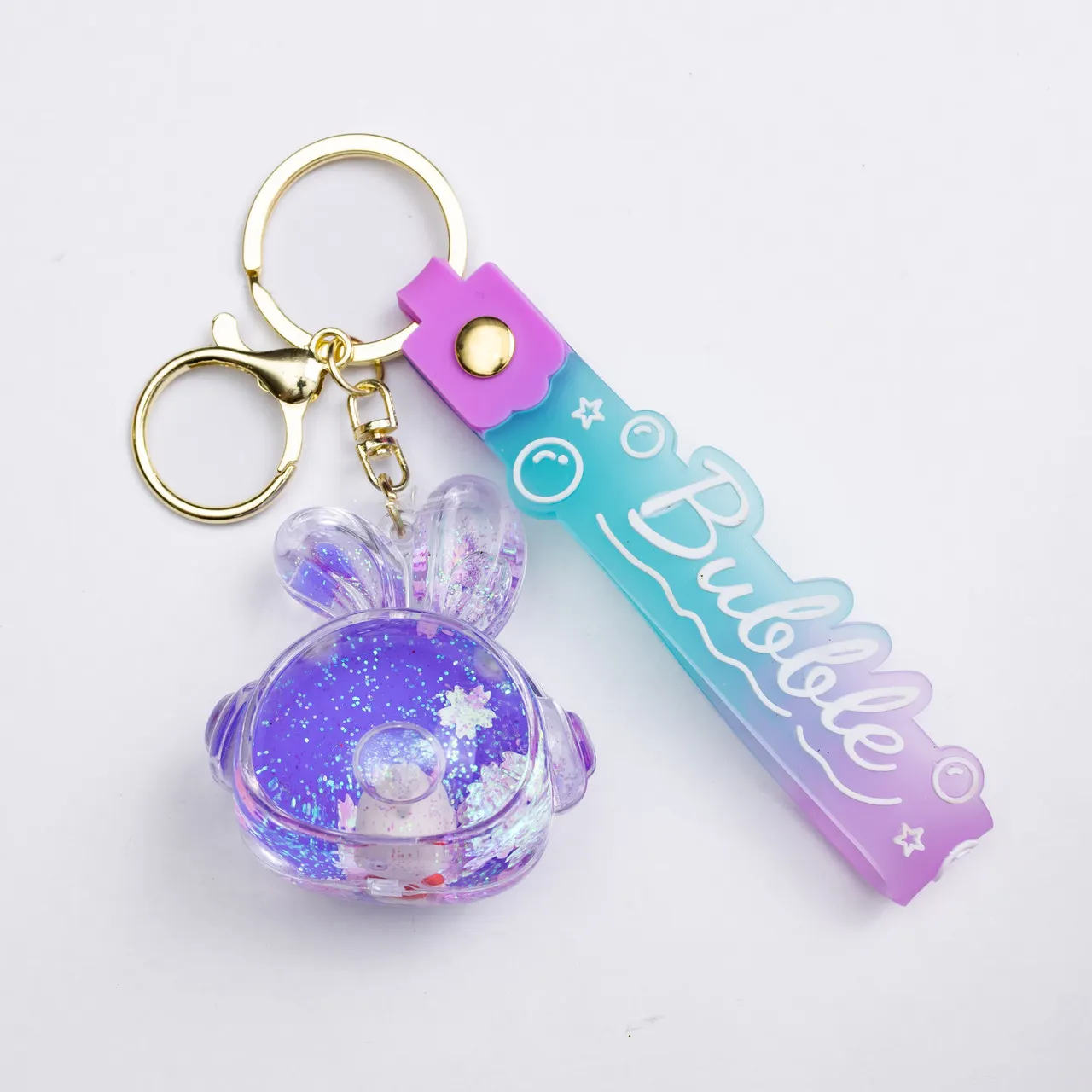 Дитячий брелок Bubble розміром 5×5.5 см є яскравим та незвичним аксесуаром, який стане чудовим доповненням до ваших ключів, сумки чи рюкзака. Всередині прозорого пластикового корпусу розташована рідина з блискітками, перлинками та олійними краплями, які при будь-якому русі плавно переливаються, створюючи ефект «живої» прикраси.