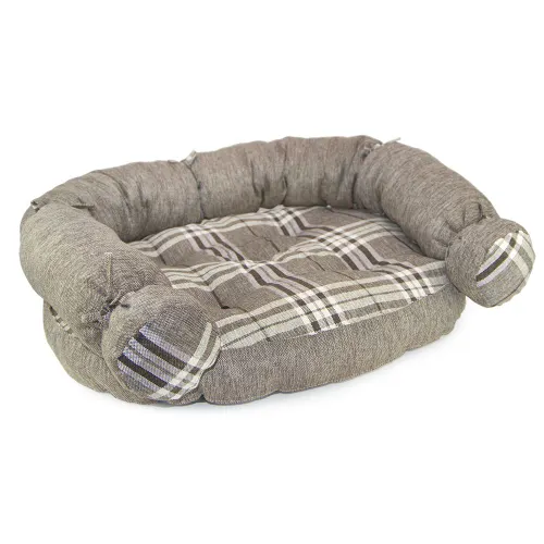Диван виготовлений із поєднання вельвету та щільної тканини в клітину. Ця комбінація забезпечує високу стійкість до зношування, що дуже важливо для підтримки його зовнішнього вигляду надовго. Тактильні відчуття від тканини м'які, що допоможе вашому вихованцю розслабитися та відчути всю повноту комфорту.
