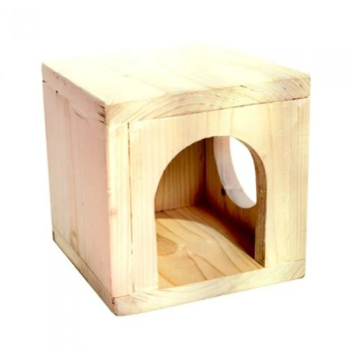 Дерев'яний підвісний будиночок буде затишним куточком для відпочинку морської свинки та оптимальним для шиншили. Він досить просторий і невисокий, щоб тварина почувала себе вільно, але у безпеці. Завдяки компактним габаритам може бути розміщений у будь-якому зручному для споглядання місці клітини. Виготовлений із безпечних для гризунів матеріалів.