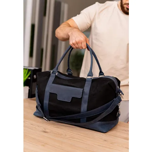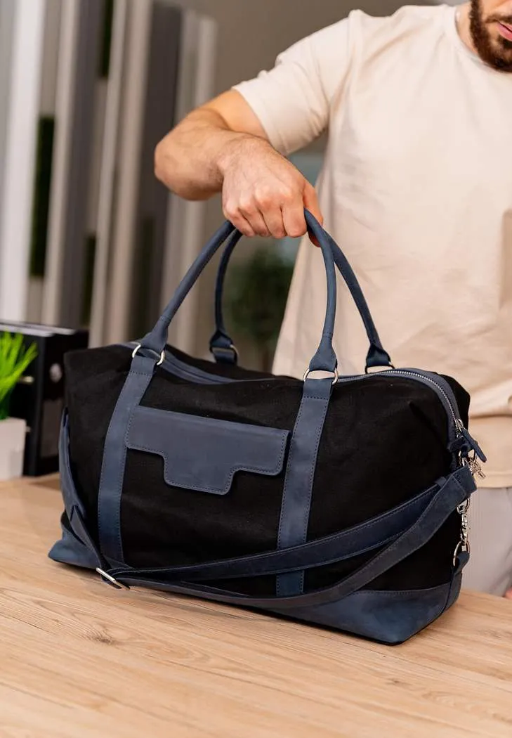 Дорожня сумка з канвасу та натуральної темно-синьої шкіри Crazy Horse