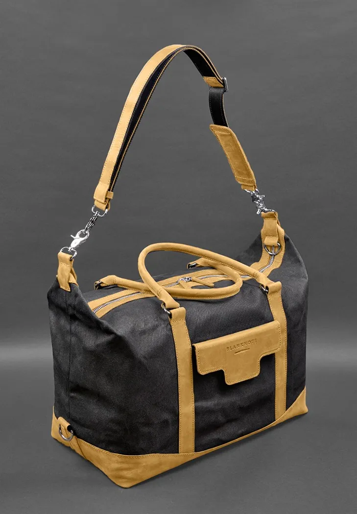 Дорожня сумка з канвасу та натуральної жовтої шкіри Crazy Horse