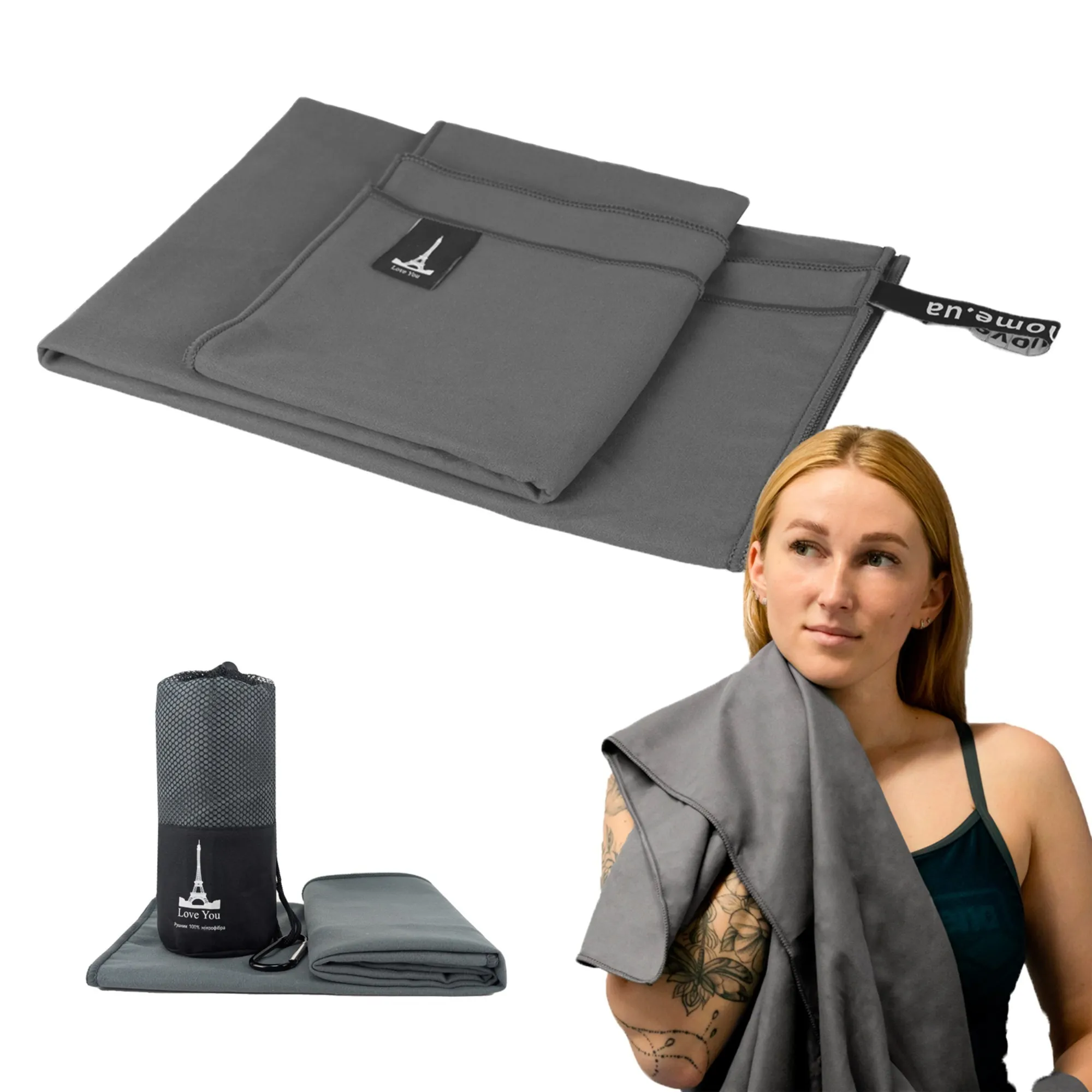Характеристики "Дорожній спортивний рушник Love You з мікрофібри з чохлом Сірий 60х120"