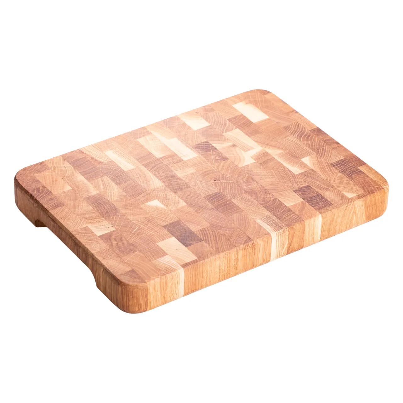 Відсутність жолобка, бортиків і ручки робить дошку максимально простою та універсальною. Така конструкція підходить для різних кухонних задач: від нарізки овочів і фруктів до розбирання м’яса і риби. Дерев'яна структура також позитивно впливає на стан ножів, не притуплюючи їх гостроту, на відміну від пластикових і скляних аналогів.