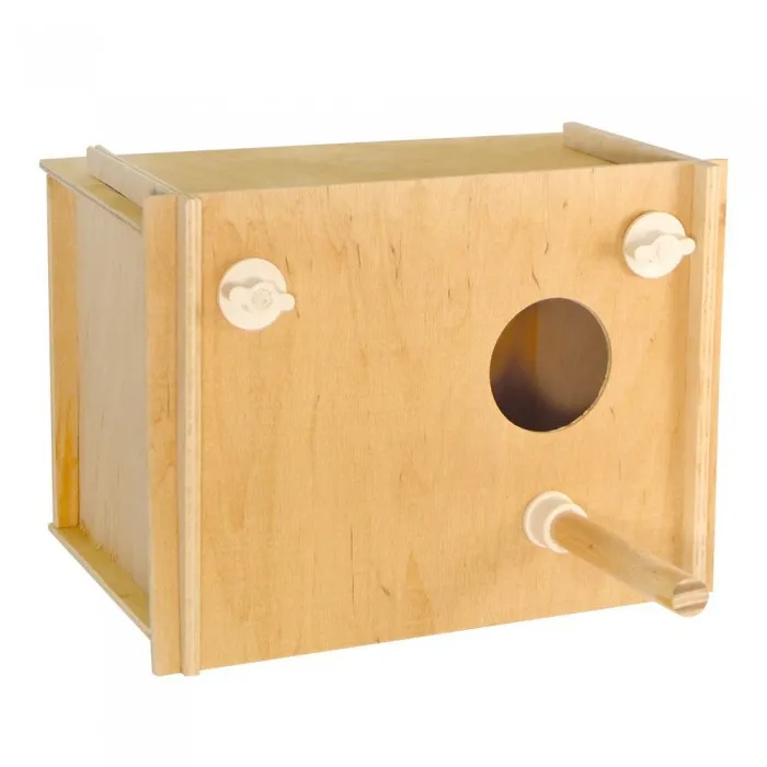 Горизонтальні дуплянки для середніх декоративних птахів. Основна перевага цього виду гнізда в тому, що площа дна є достатньою для запобігання травмуванню самкою кладки. При правильному виборі гніздечка, можливі проблеми з потомством та його батьками зменшаться, а період висиджування яєць самкою та подальший догляд не буде ускладнені для власника. Виготовлена з безпечних матеріалів та спроектована з урахуванням рекомендацій фахівців щодо розведення декоративних птахів.