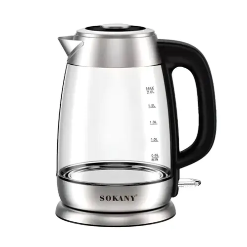 Електрочайник Sokany SK-SH-1069 Electric Kettle 2000W 2l прозорий чайник