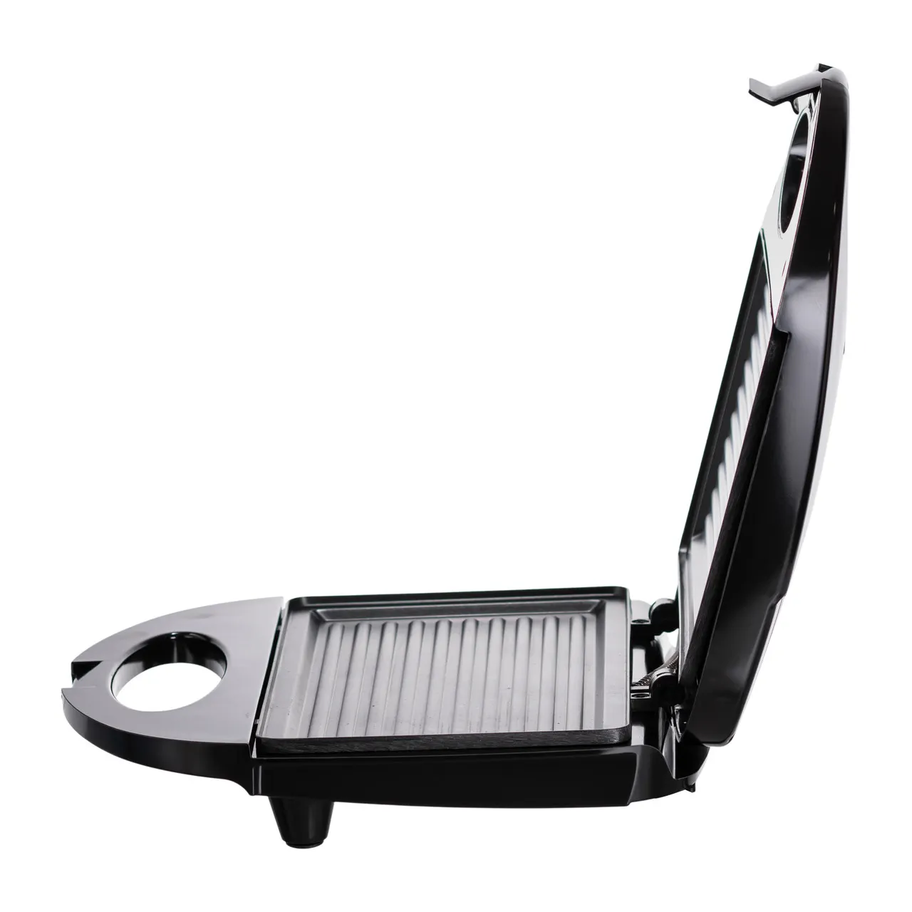 Гриль дозволяє швидко прожарити м'ясо, приготувати сендвічі, бургери, овочі та рибу завдяки двосторонньому нагріву плит і спеціальному ребристому покриттю. Його ергономічний корпус із термостійкого пластику забезпечує безпеку та комфорт під час роботи, а компактні габарити та мала вага роблять прилад легким у зберіганні та перенесенні.