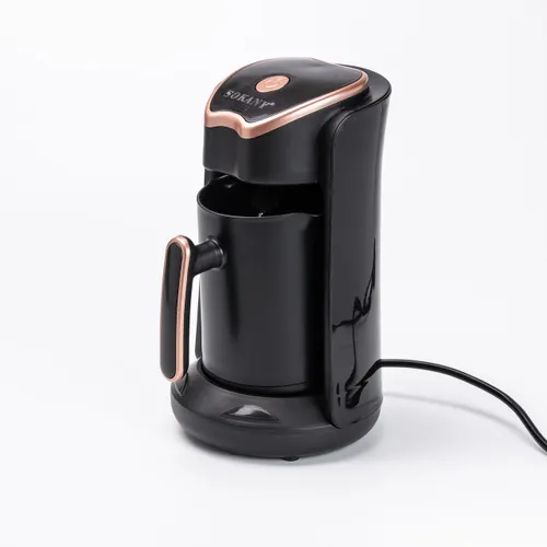 Електротурка Sokany SK-04008 об'ємом 250 мл являє собою компактний пристрій для швидкого та зручного приготування кави. Потужність у 600 Вт та електрична система нагріву дозволяють швидко варити свіжу меленої кави, зберігаючи насичений аромат і смак напою. Завдяки стильному чорному корпусу з золотистими елементами, турка стане не лише функціональним приладом, а й прикрасою кухонного інтер’єру.