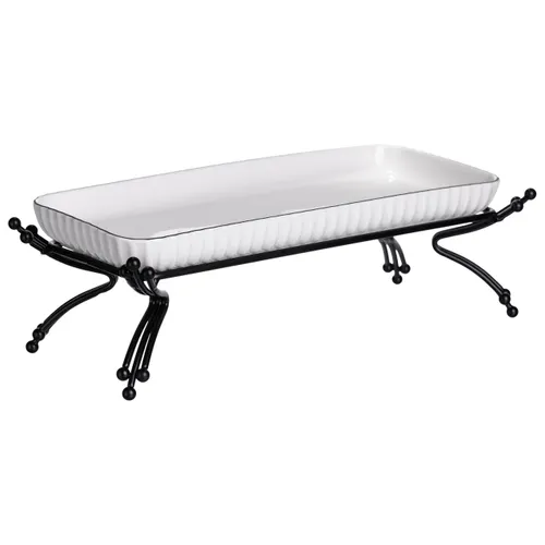 Порцелянове блюдо для сервірування на металевій підставці 29,5×12×9 (см) Біле з чорним LB-1565B