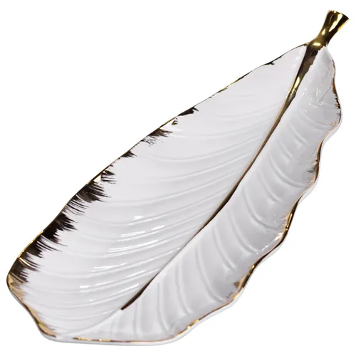 Порцелянова страва для сервірування столу 45×16,5×3 см являє собою вишуканий предмет, який поєднує в собі функціональність і стиль. Завдяки білосніжній порцеляні та витонченій золотистій окантовці, вона додає елегантності будь-якому типу подачі страв — чи то закуски, основні страви чи десерти.