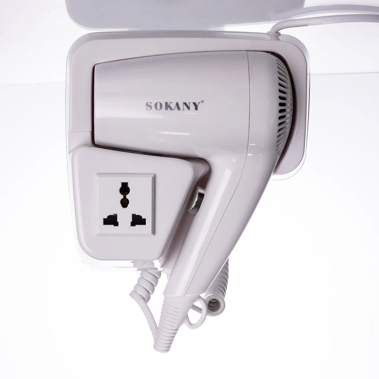 Настінний фен для сушіння волосся Sokany SK-CF-2217 потужністю 1200 Вт поєднує компактні розміри та ефективну функціональність. Цей побутовий прилад розроблений спеціально для зручного кріплення на стіні, що дозволяє значно економити місце у ванній кімнаті або робочих зонах готелів і салонів краси.