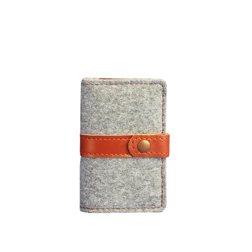 Кард-кейс оформлений у дусі скандинавського стилю, що поєднує мінімалізм та затишок: стриманий коричневий відтінок фетру та контрастні шкіряні елементи роблять зовнішній вигляд аксесуара привабливим та практичним. Виріб закривається на зручну металеву кнопку, що надійно захищає вміст.
