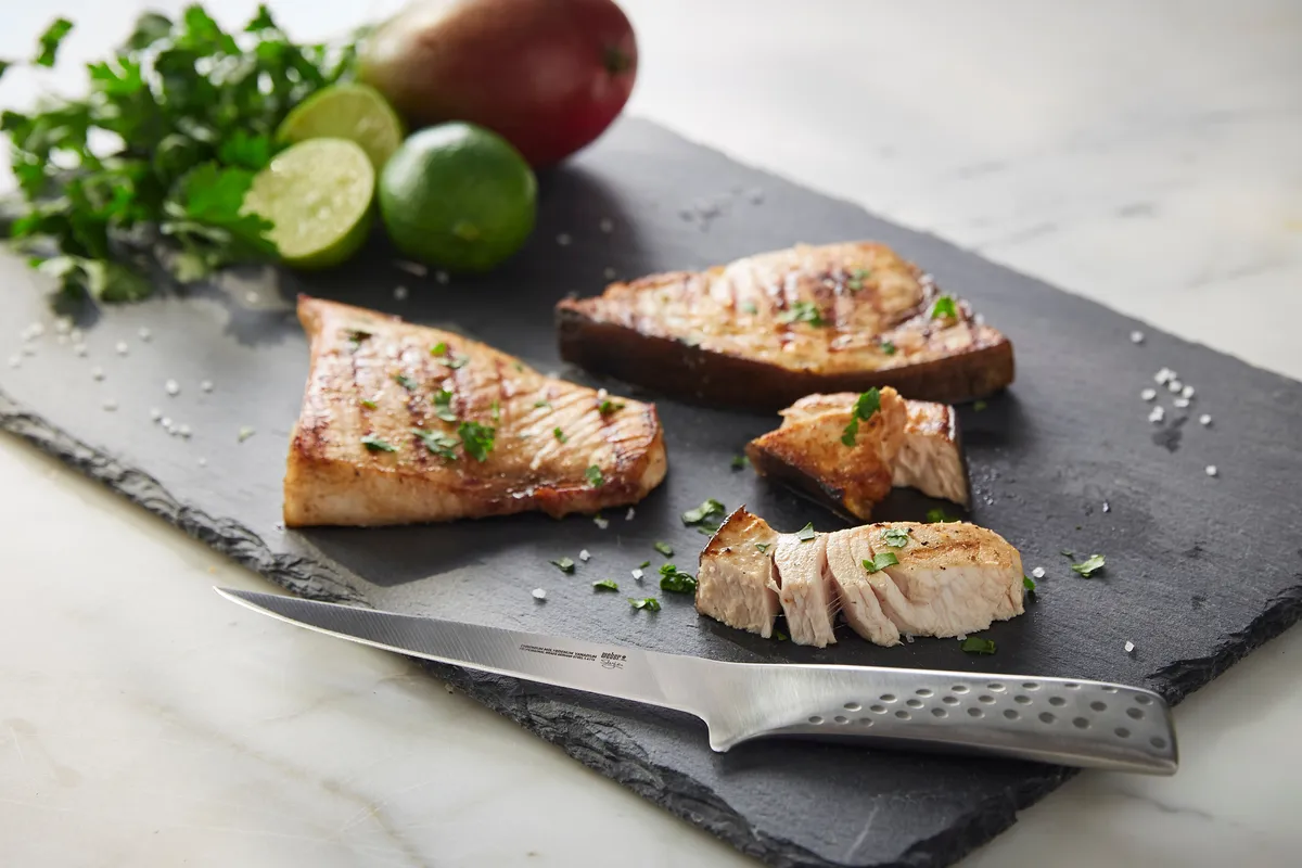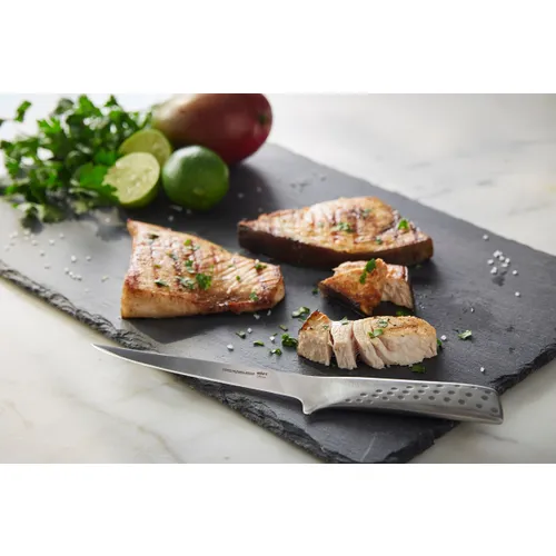 Філейний ніж підходить для роботи з різними типами продуктів. Наприклад, він ідеально справляється з дрібним обробленням риби, а завдяки гострому лезу дозволить легко нарізати шматочки м'яса для барбекю або грилю.