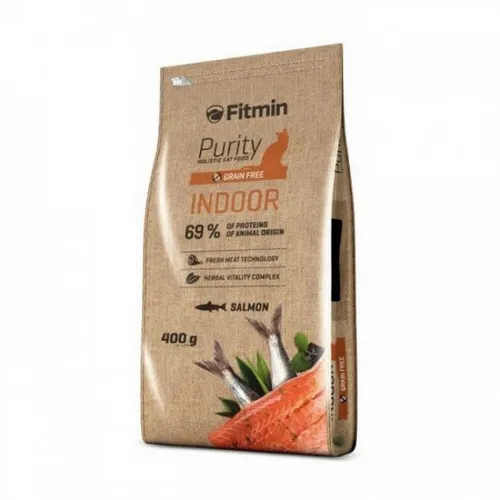 Fitmin cat Purity Indoor 400 г лосось — це високоякісний корм, призначений для харчування дорослих кішок, починаючи з 12 місяців життя, які мешкають переважно у приміщенні. Завдяки збалансованому складу та унікальним інгредієнтам корм підходить для забезпечення всіх потреб вашого вихованця.