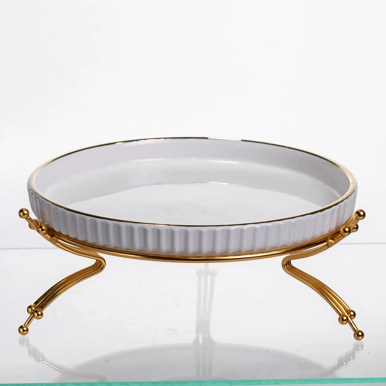 Фруктовниця порцелянова на металевій підставці Ø25 (см) кругла ваза цукерниця для фруктів Золото LB-1573G