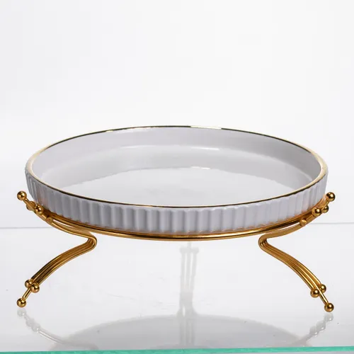 Характеристики "Фруктовниця порцелянова на металевій підставці Ø25 (см) кругла ваза цукерниця для фруктів Золото LB-1573G"
