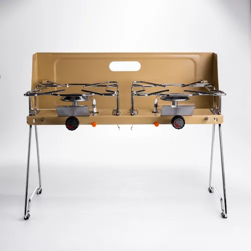 Універсальна портативна кухня, розроблена з акцентом на простоту підключення та надійність. Головна фішка цієї моделі - адаптери, які дозволяють використовувати практично будь-який тип туристичного газу без зайвого клопоту. Ідеально підходить для сімейного відпочинку та тривалих стоянок. Універсальність палива: Плита оснащена вбудованими конекторами, які підходять для найпопулярніших стандартів газу: Цангові балони: Високі «дихлофосні» балони підключаються безпосередньо знизу та фіксуються спеціальним затискачем. Різьбові балони (EPI-GAS): Для них також передбачено окремий роз'єм, що дозволяє використовувати якісніші газові суміші в холодну погоду. Перехідники в комплекті: У наборі є два адаптери, тому покупцеві не потрібно нічого докуповувати — він просто бере той газ, який є у найближчому магазині. Продуктивність та комфорт: Оптимальна потужність: Два пальники по 2.6 кВт кожна. Цього цілком достатньо для швидкої смаження м'яса або приготування супу у великому казанку. П'єзопідпал: Кожна конфорка запускається кнопкою. Більше не потрібно шукати запальничку на вітрі. Тонка регулювання: Поворотні ручки дозволяють точно налаштувати полум'я від "ледь помітного" для томлення каші до інтенсивного вогню. Вітрозахист: Високі борти корпусу захищають полум'я від задування, що критично важливо для економії газу та швидкості приготування на відкритому повітрі. Конструкція: Високі ніжки: Висота плити 34,5 см дозволяє комфортно готувати, не нахиляючись надто низько. Ніжки забезпечують стійкість навіть на нерівному ґрунті. Габарити: У розкладеному вигляді робоча поверхня становить 49,3×19 см, що дозволяє ставити дві каструлі середнього розміру одночасно. Компактне складання: Після використання ніжки та борти дозволяють легко підготувати плиту до транспортування. Характеристики: Потужність: 5,2 кВт Матеріал: сталь з емальованим покриттям, алюміній Розміри: 49,3*19*34,5 см Вага: 3,6 кг
