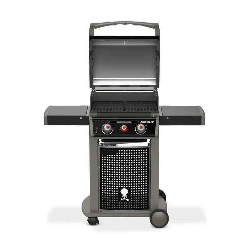 У моделі Weber Spirit Classic E-220s GBS передбачені складні бокові столики, які забезпечують додатковий робочий простір і легко прибираються за потреби економії місця на терасі або балконі. Гачки для інструментів дозволяють завжди тримати під рукою необхідні аксесуари, що прискорює процес приготування та підвищує комфорт роботи з грилем.