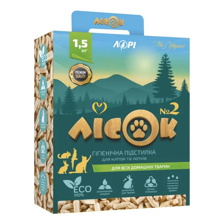 Гігієнічний наповнювач для лотків і клітин (деревний) 1.5кг Лісок-2 Лорі (4 коробки)