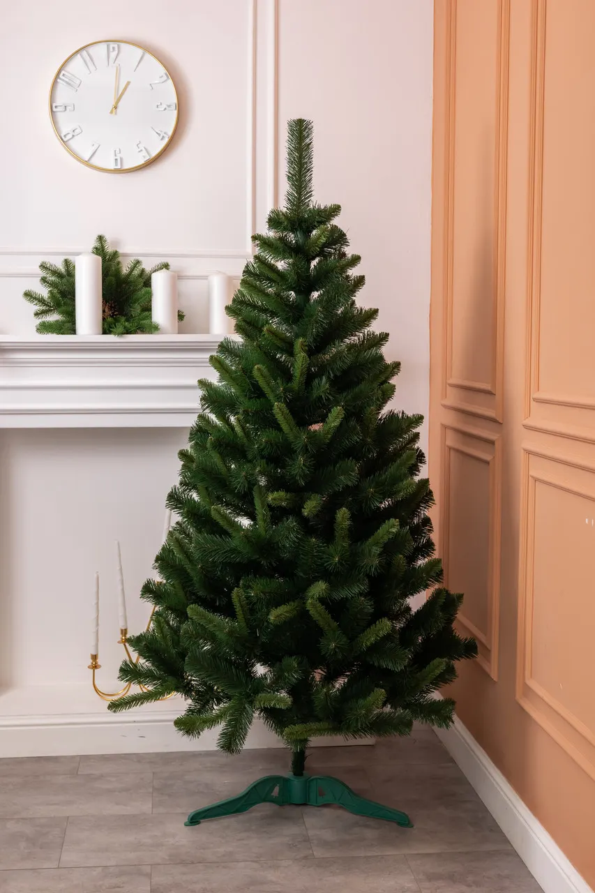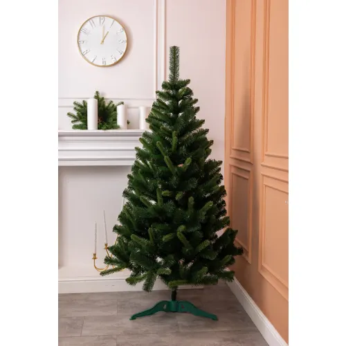 Гілки штучної ялинки виготовлені з преміального полівінілхлориду (ПВХ), відомого своєю стійкістю до механічних пошкоджень та вигорання. Підставка виконана з міцного пластику, що забезпечує стійкість і надійність конструкції.