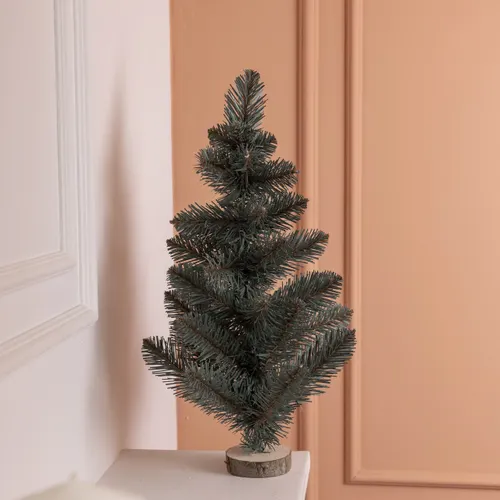 Штучна новорічна міні-ялинка "Полонинська" висотою 45 см — компактний та зручний варіант для створення святкового настрою у різних приміщеннях. Цей невеликий елемент декору виготовлений з високоякісного ПВХ, що забезпечує реалістичний вигляд пухнастих і густих гілочок з блакитним відтінком. Особливістю моделі є підставка з натурального дерева у вигляді зрізу, яка надає виробу природного та затишного стилю, добре поєднуючись з різними інтер’єрними рішеннями.